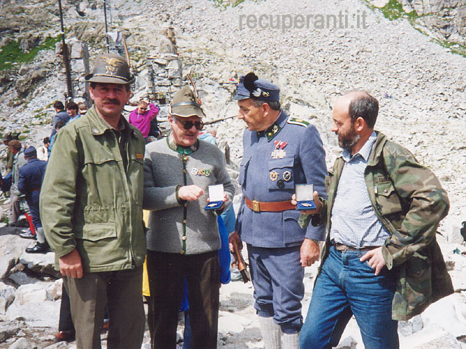 La Festa della Fratellanza sulla Presena è stata ideata e voluta da Emilio Serra da Vermiglio (TN). In queste immagini sono presenti il primo Presidente dei Recuperanti Sig. Bortolo Svaizer, e il secondo Presidente Ilario Simion.