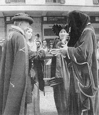 speaker di corte, consegna le chiavi a Massimiliano I, che le mostra alla folla e a cavallo conquista via Mezzaterra, e poi prende il microfono per spazzare via le polemiche di questi ultimi giorni: «Oggi ricordiamo quello che nel 1509 era stato vissuto come un giorno fausto e che poi invece non si era rivelato tale», dice. «Spiace che questa buona intenzione sia stata mal interpretata perché la volontà di fondo è solo quella di ricordare la storia, come insegnamento per il futuro». L’applauso del pubblico promuove l’arringa del sindaco. Il suo vice - quello vero, della giunta di oggi - ossia Ennio Trento, a pochi passi sorride, vestito come un uomo del terzo millennio: «Perché non ho una parte? Sono assessore alla cultura, io la storia la conosco...». Ma è solo una battuta, ovvio. E magari fra un anno in scena ci sarà anche lui.