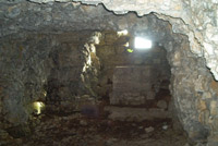 Le postazioni per armi automatiche si possono trovare in vari modelli: aperte con basso muretto per tiratori sdraiati, completamente blindate con 2, raramente 3, feritoie a 45°, banchina per appoggio dell’arma (l’operatore sparava stando seduto su di uno sgabello) o simili alle precedenti ma scavate nella roccia viva. Nella fattispecie quella qui presente è un buon esempio di appostamento scavato nella roccia caratterizzato dalla particolarità di avere 4 postazioni di tiro che dominano su ben tre versanti. L’ingresso originale, oggi inaccessibile per il crollo della volta, era posizionato sul versante nord, protetto dal costone della montagna. La sua funzione tattica era di proteggere il fianco della montagna dell’avanzata delle forze nemiche. Queste postazioni erano generalmente armate con mitragliatrici tipo Revelli Fiat 1914 (del peso di 38,5 Kg, montata su treppiede) con velocità di tiro di 500 colpi al minuto, erano in grado di sparare ad una distanza di 500 m.